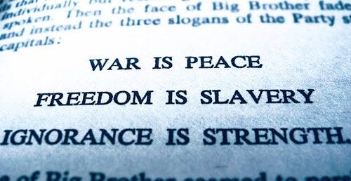 Αυτό εξηγείται στην περίφημη τοποθέτηση του Τζορτζ Όργουελ για τις «λέξεις χωρίς νόημα», τις οποίες αντιλαμβανόταν ως μια απλή γλώσσα που χρησιμοποιείται με συνειδητά ανέντιμους τρόπους για την επιβολή πολιτικών προταγμάτων (ατζέντες). Έτσι βλέπουμε λέξεις όπως «φασισμός», «ρατσισμός», «ναζισμός» και «δημοκρατία», οι οποίες κάποτε είχαν μια κοινή, εύλογα κατανοητή χρήση, να μετατρέπονται σε ανεξέλεγκτα ρόπαλα που χρησιμοποιούνται σε πολιτικές μάχες. Οι δίχως νόημα λέξεις αναδεικνύουν τον ομιλητή ή τον συγγραφέα ως εγγενώς καλό και δίκαιο (εμάς), ενώ τοποθετούν τον στοχευμένο αποδέκτη τους στην κατηγορία του Πολύ Κακού Ανθρώπου (αυτούς). Αν οι λέξεις είναι εργαλεία, οι λέξεις χωρίς νόημα είναι σφυριά.