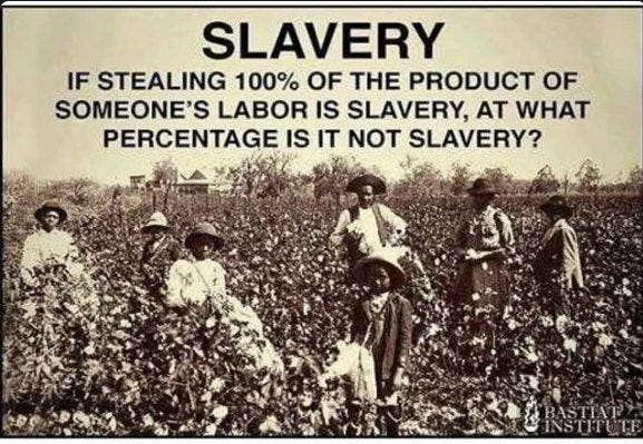 Οι άνθρωποι σήμερα είναι σκλάβοι του κράτους μέσω του φόρου εισοδήματος. Σίγουρα, αυτή η σκλαβιά είναι πολύ καλύτερη από εκείνη του 18ου αιώνα, αλλά η ουσία της παραμένει.