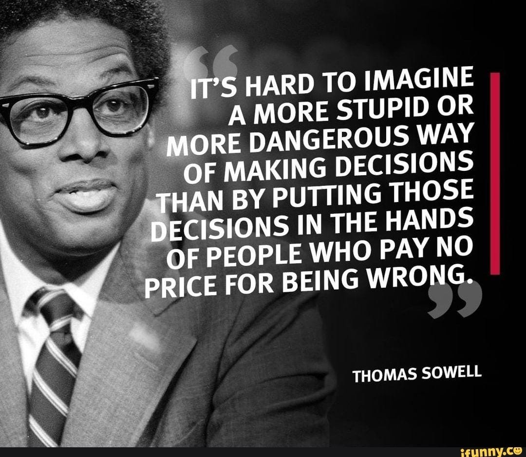 «Ιδιαίτερα στα δημοκρατικά πλαίσια, η συνδυασμένη επίδραση της δράσης προνομιούχων ομάδων συμφερόντων, τα φαινόμενα κυβερνητικής κοντόφθαλμης σκέψης και εξαγοράς ψήφων, η μεγαλομανία των πολιτικών και η ανευθυνότητα κι η τύφλωση των γραφειοκρατιών συνιστούν ένα επικίνδυνα ασταθές και εκρηκτικό κοκτέιλ. Το μείγμα αυτό ανακινείται συνεχώς από κοινωνικές, οικονομικές και πολιτικές κρίσεις, τις οποίες, παραδόξως, οι πολιτικοί και οι κοινωνικοί "ηγέτες" δεν παραλείπουν ποτέ να χρησιμοποιούν ως δικαιολογία για επόμενες δόσεις παρέμβασης, οι οποίες απλώς δημιουργούν νέα προβλήματα, ενώ επιδεινώνουν ακόμη περισσότερο τα υπάρχοντα.»