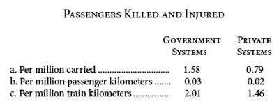 Επιπλέον, στο βιβλίο του, Where and Why Public Ownership Has Failed (1914), ο Yves Guyot, χρησιμοποιώντας τόσο τα στατιστικά όσο και την οικονομική θεωρία, δείχνει με συστηματικό τρόπο ότι οι ιδιωτικοί σιδηρόδρομοι είναι ασφαλέστεροι, κοστίζουν λιγότερο και είναι πιο αποδοτικοί. Μια μη ασφαλής ιδιωτική σιδηροδρομική εταιρεία τιμωρείται από τους καταναλωτές, ενώ οι εθνικοποιημένοι οργανισμοί διαφεύγουν κάθε υλικής και ηθικής ποινής. Ως εκ τούτου, οι απαιτήσεις ασφάλειας είναι πιο πιθανό να τηρούνται στον ιδιωτικό τομέα. Επιπλέον, ο η γραφειοκρατία στους οργανισμούς που ανήκουν στην κυβέρνηση τείνει να δημιουργεί ανευθυνότητα και, επομένως, να διαφθείρει την ηθική. Οι άνθρωποι που δεν αισθάνονται υπόλογοι δεν μπορούν να ενεργήσουν ηθικά. Αν κάποιος δεν αισθάνεται υπόλογος, γιατί να προσπαθήσει να αποφύγει ένα σιδηροδρομικό ατύχημα; Έτσι, όπως έδειξε ο Guyot, ο συνολικός μέσος αριθμός επιβατών που σκοτώθηκαν και τραυματίστηκαν από το 1905 έως το 1909 στη Γαλλία ήταν: