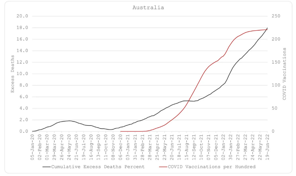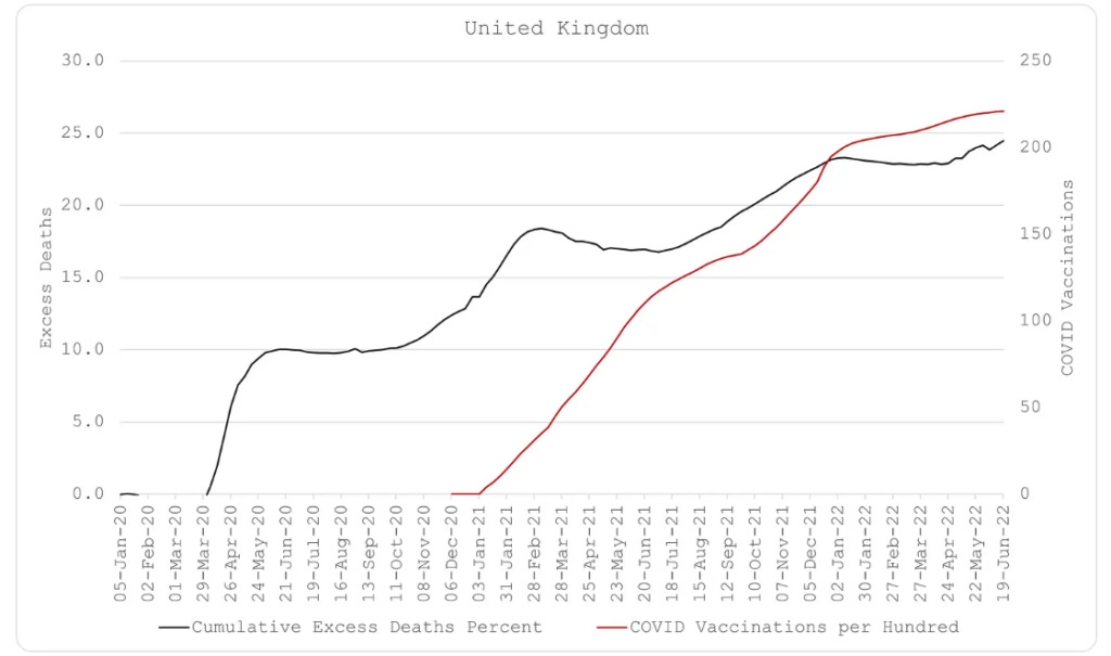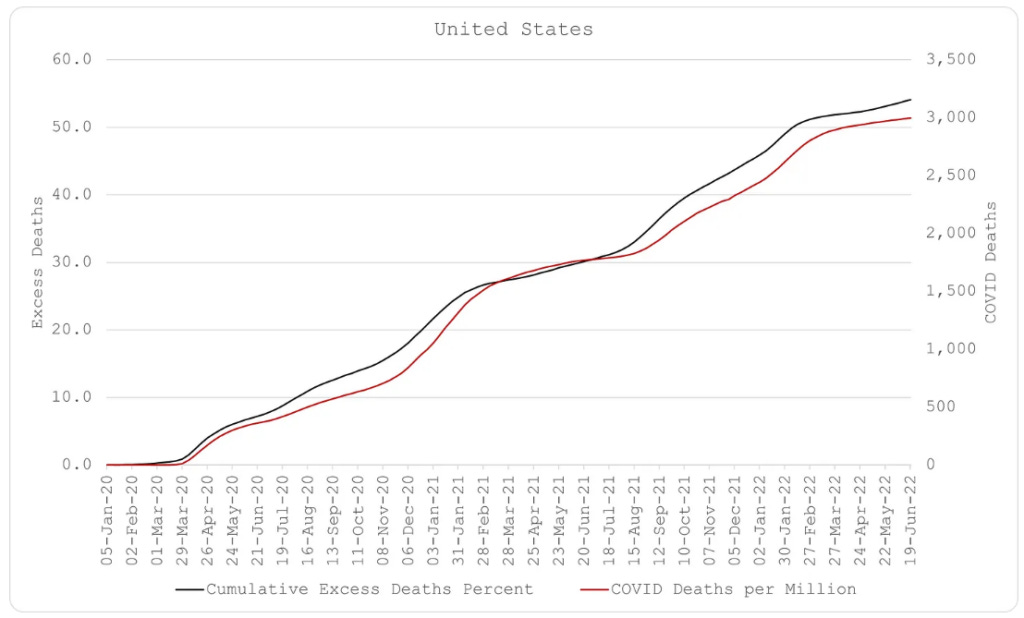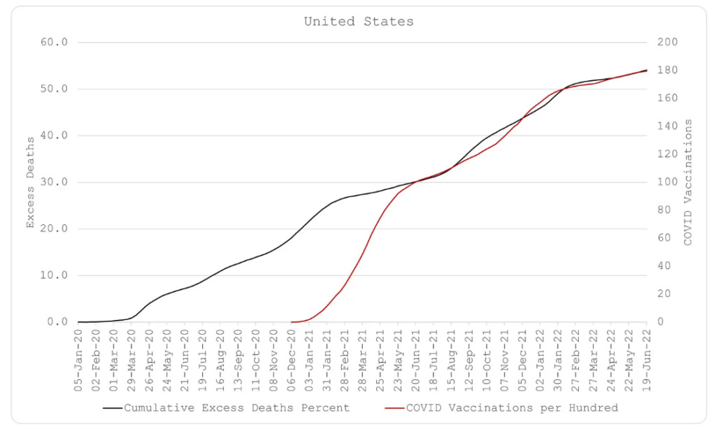 Πρώτον, ο Covid υπάρχει και για κάποιους είναι θανατηφόρος. Αυτό είναι προφανές, δεδομένων των πολύ ισχυρών και σταθερών συσχετισμών μεταξύ των εβδομαδιαίων πλεοναζόντων θανάτων και των εβδομαδιαίων θανάτων από Covid. Νομίζω ότι είναι επίσης σημαντικό να αποδεχθούμε αυτό το γεγονός δεδομένου ότι υπάρχουν ελάχιστες αμφιβολίες πλέον ότι ο Covid κατασκευάστηκε σε βιοεργαστήριο. Οι υπεύθυνοι για την κατασκευή του είναι υπεύθυνοι για τα εκατομμύρια των θανάτων που έχει προκαλέσει.