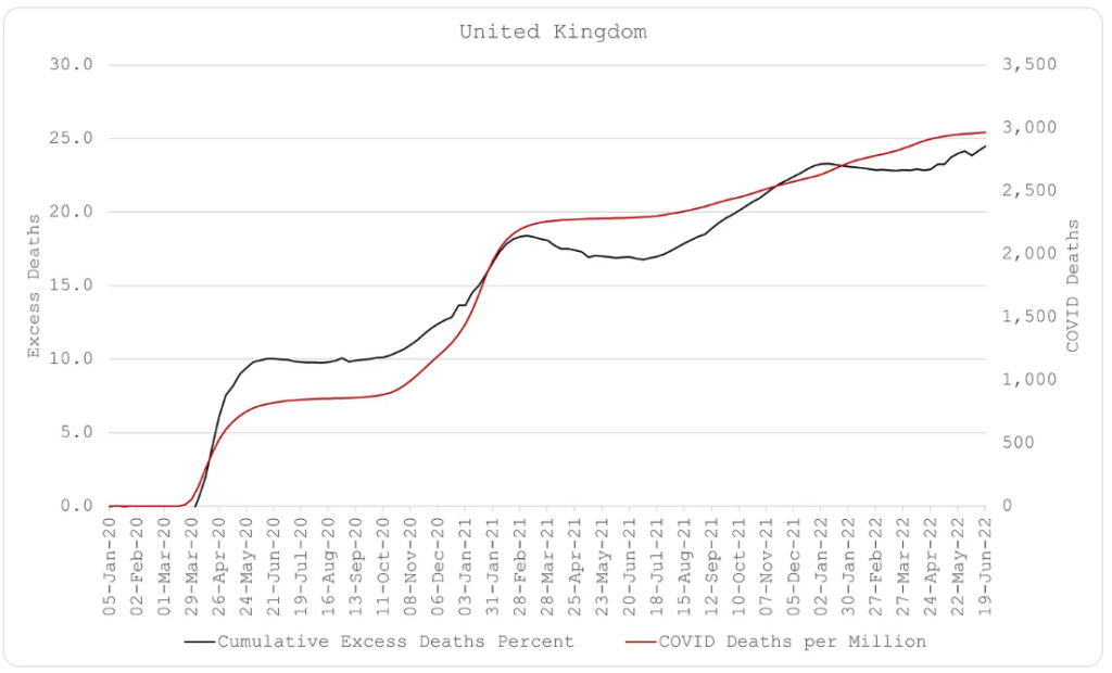 Εδώ είναι τα γραφήματα, που απεικονίζουν τους συνολικούς πλεονάζοντες θανάτους, έναντι των θανάτων από Covid. (Μπορείτε να βρείτε το σύνολο των γραφημάτων εδώ .)