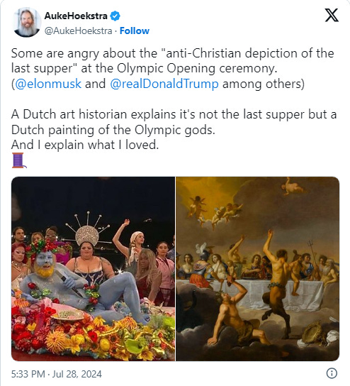 Πολλοί άνθρωποι έχουν πει την άποψή τους για την εντελώς αλλόκοτη και, όπως αναμενόταν, εξαχρειωμένη τελετή έναρξης των Ολυμπιακών της Γαλλίας. Αλλά καθώς η σκόνη καταλαγιάζει από την σκ@τοθύελλα του Παρισιού, θα ήθελα να υποβάλω τρεις εξόφθαλμα εύλογες παρατηρήσεις, που καλό θα ήταν να σημειώσετε και να θυμάστε στο μέλλον.