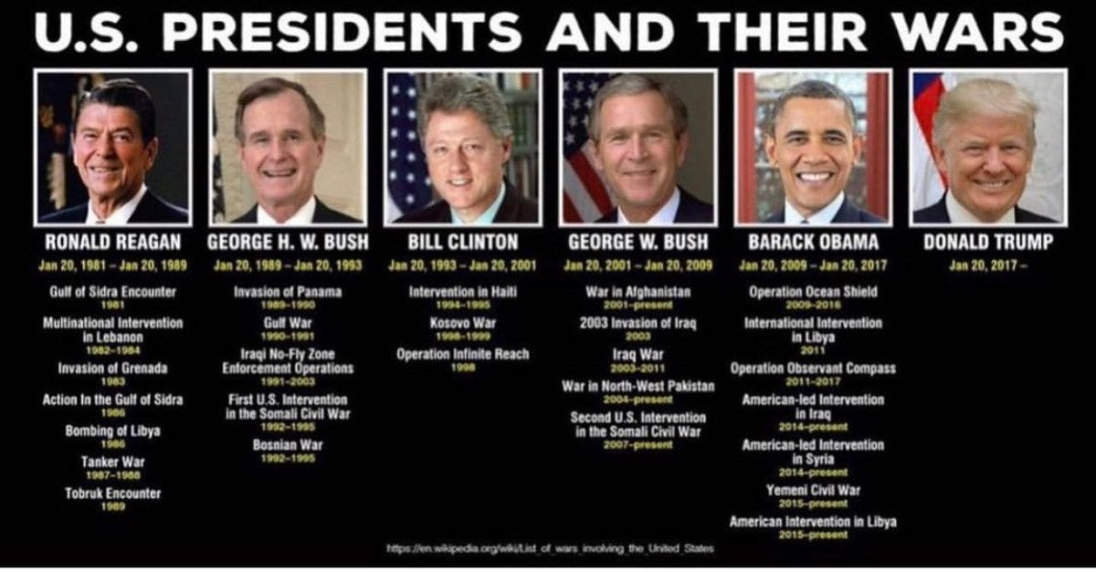 Συνδυαστικά, αυτοί οι παράνομοι πόλεμοι σκοτώσαν εκατομμύρια ανθρώπους. Είναι φρικτά εγκλήματα, για τα οποία ο Τραμπ είναι επίσης ένοχος. Η κυβέρνησή του συνέχισε τους (σ.σ. ήδη υφιστάμενους) πολέμους στη Συρία, το Ιράκ, το Αφγανιστάν, τη Σομαλία και την Υεμένη, παρά το γεγονός ότι ο ίδιος ακολούθησε μια λιγότερο λιγότερο επεμβατική εξωτερική πολιτική. Ωστόσο, δεν κατηγορείται για τίποτα από αυτά. Τα εγκλήματα για τα οποία κατηγορείται είναι πολύ λιγότερο σοβαρά, αλλά είναι πιο αποκλειστικά στον Τραμπ.