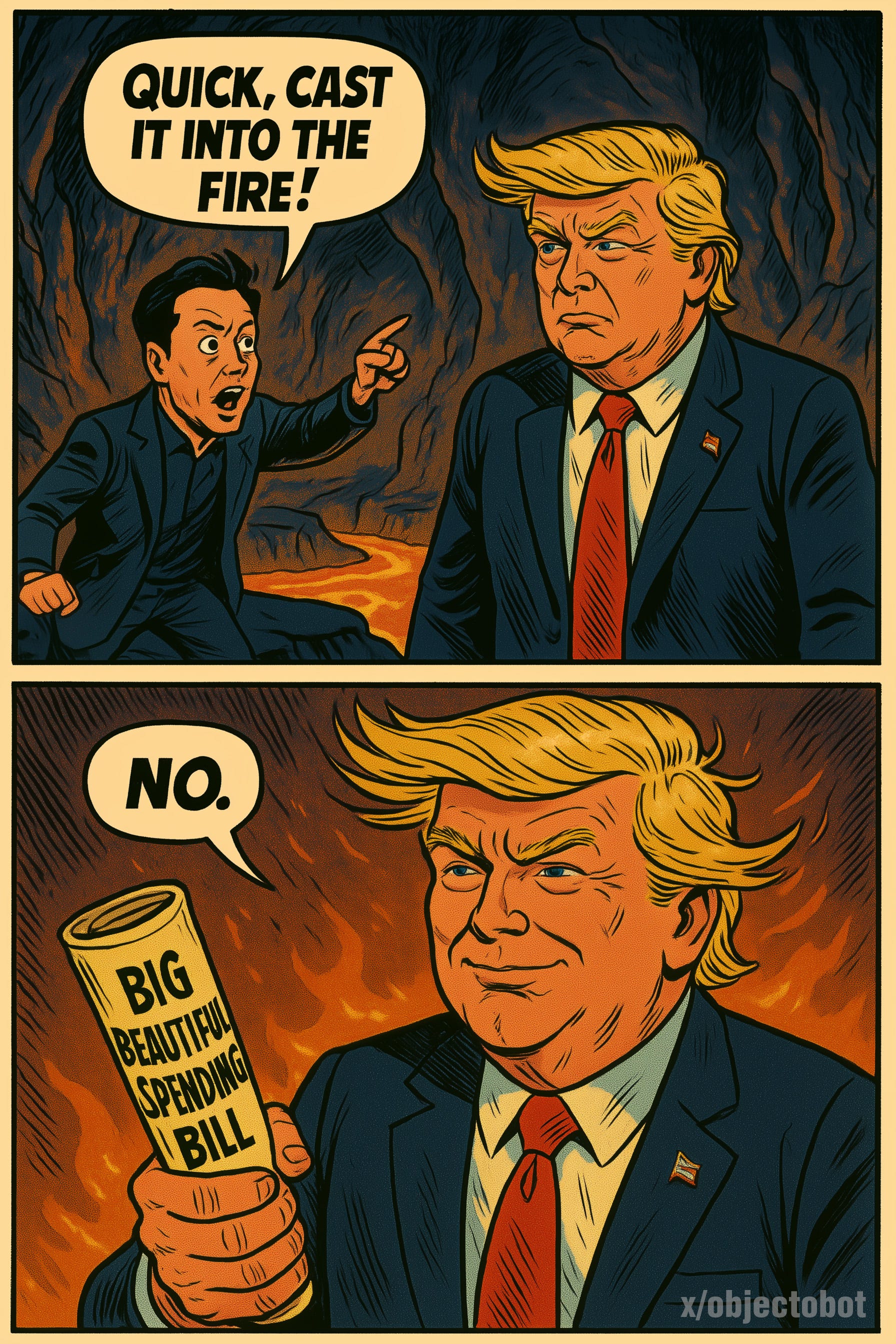 Αντιθέτως, οι ΗΠΑ όχι μόνο εξακολουθούν να αντιμετωπίζουν μια δημοσιονομική κρίση, αλλά η κυβέρνηση Τραμπ αρνείται να μειώσει τις δαπάνες. Μολονότι ο Τραμπ υποσχέθηκε να ισοσκελίσει τον προϋπολογισμό, ο «Μεγάλος, Όμορφος Προϋπολογισμός» του Προέδρου εκτιμάται ότι θα μειώσει τα διπλάσια έσοδα σε σύγκριση με τις δαπάνες που θα μειώσει, προσθέτοντας έτσι 2,4 τρισεκατομμύρια δολάρια στο εντυπωσιακό χρέος των 36,2 τρισεκατομμυρίων δολαρίων της Αμερικής. Η αντίσταση σε αυτό το νομοσχέδιο των Ρεπουμπλικανών φαίνεται μέχρι στιγμής μάταιη.