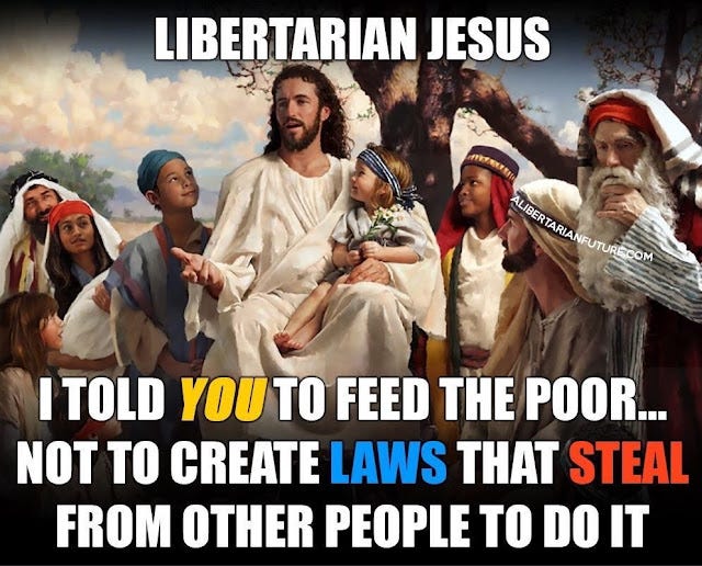 Ο Ιησούς δεν έκανε ποτέ καν νύξη περί αναδιανομής. Αντ' αυτού, προειδοποίησε ενάντια στην απληστία, ενώ αρνήθηκε να παρέμβει σε ξένες υποθέσεις.