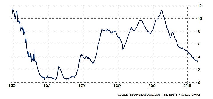 Η Μέρκελ δεν αξίζει ούτε τα εύσημα για τη μείωση του ποσοστού ανεργίας στη Γερμανία που σημειώθηκε κατά τη διάρκεια της θητείας της. Ήταν ο προκάτοχός της, ο Γκέρχαρντ Σρέντερ (καγκελάριος από το 1998 έως το 2005) που έθεσε σε εφαρμογή τις μεταρρυθμίσεις που θα μείωναν την ανεργία. Εκείνος πέτυχε το σχεδόν αδύνατο κατόρθωμα να συμπαρασύρει τα συνδικάτα και να περάσει τα μέτρα από το κοινοβούλιο.