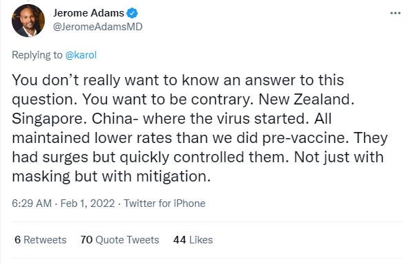 Και εδώ είναι ο πρώην γενικός χειρουργός Jerome Adams μόλις πριν από δύο μήνες: