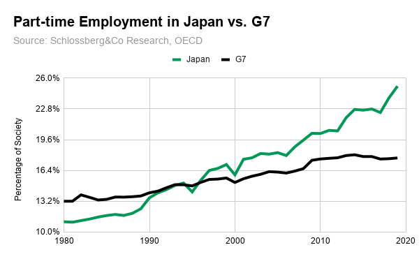 Τα μηδενικά και αρνητικά επιτόκια όχι μόνο παρέλυσαν τον καινοτόμο δυναμισμό των ιαπωνικών εταιρειών, αλλά την ίδια στιγμή επηρέασαν επίσης τον εργαζόμενο πληθυσμό. Όταν αναφερόμαστε στις χαμένες δεκαετίες, μιλάμε επίσης για και την χαμένη γενιά της Ιαπωνίας.